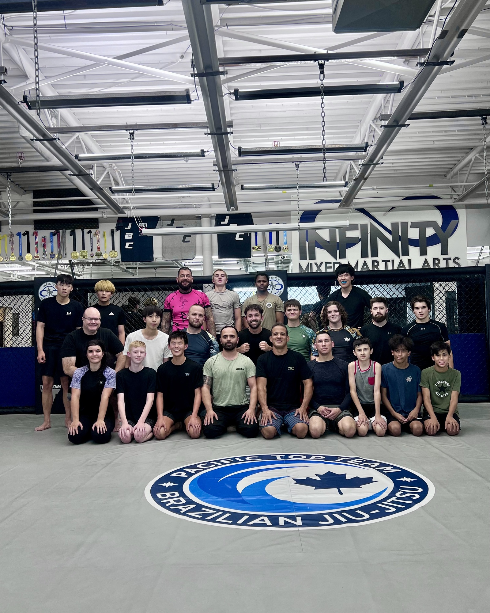 Jiu-Jitsu is the second cornerstone of Infinity, built on a strong foundation and backed by the respected Pacific Top Team network — a club with hundreds of students and affiliates across British Columbia. This partnership ensures our students have access to some of the most experienced instructors and highest-level training available in the region.